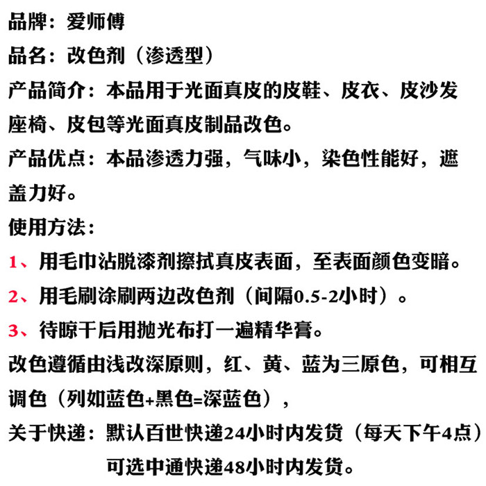 爱师傅翻油纯皮鞋包包黑色膏旧鞋翻新上色补色漆渗透型染色改色剂
